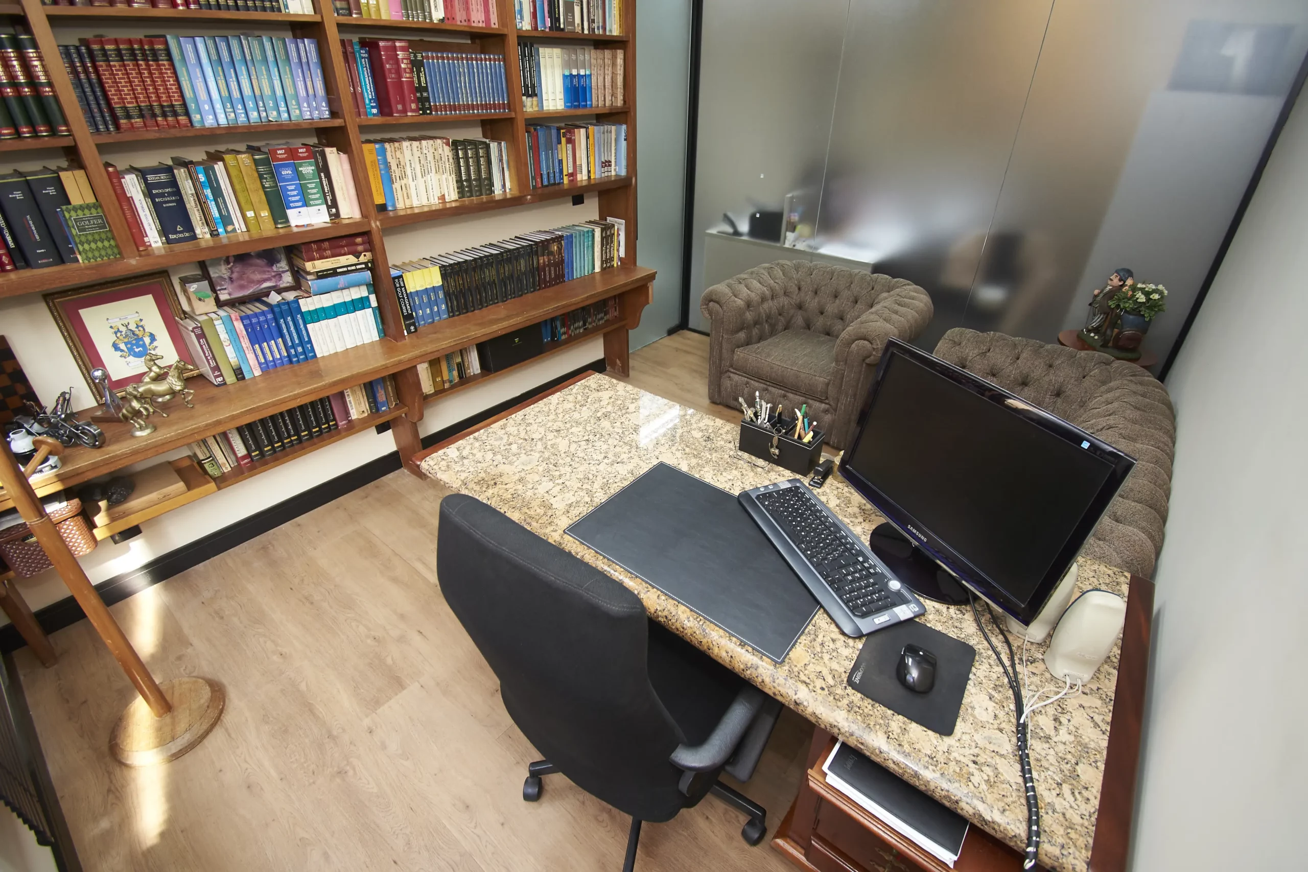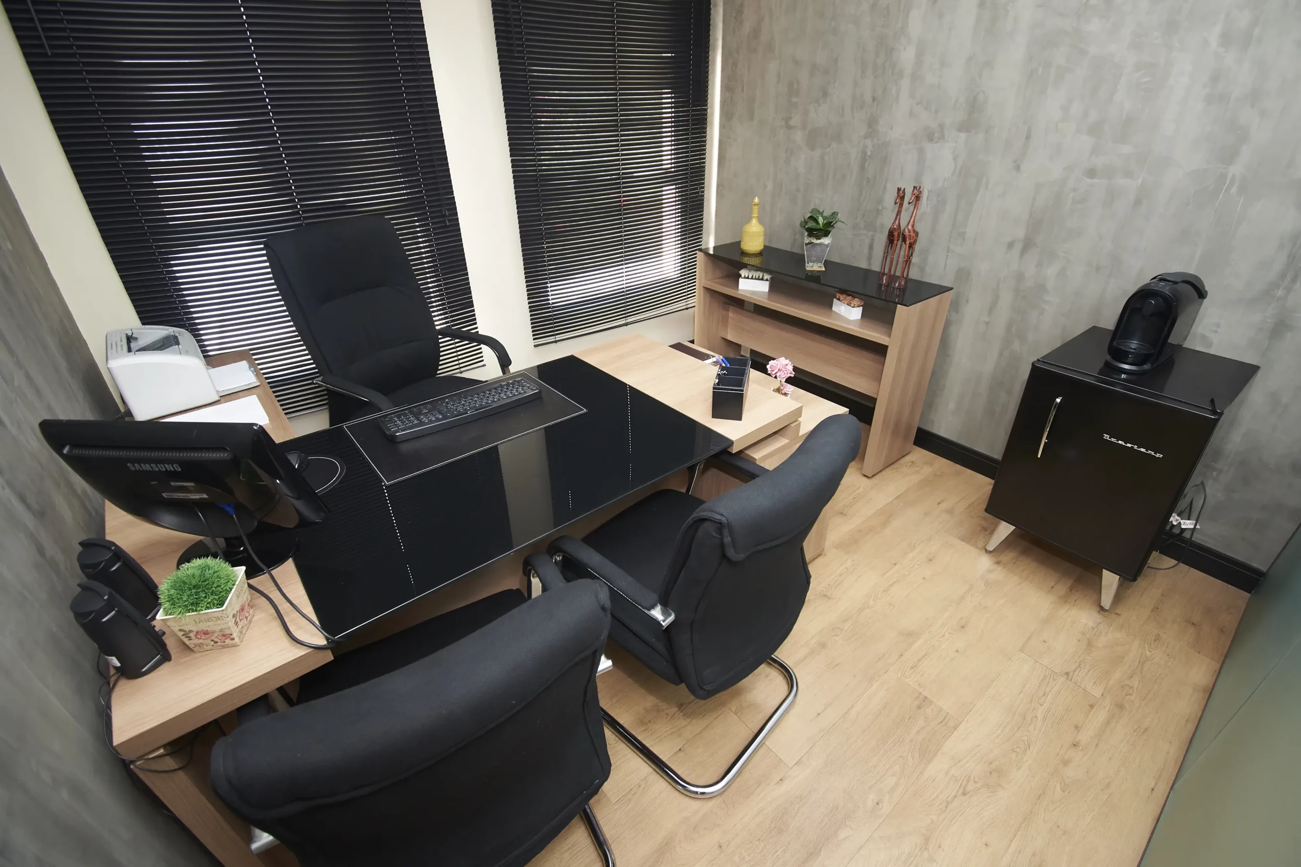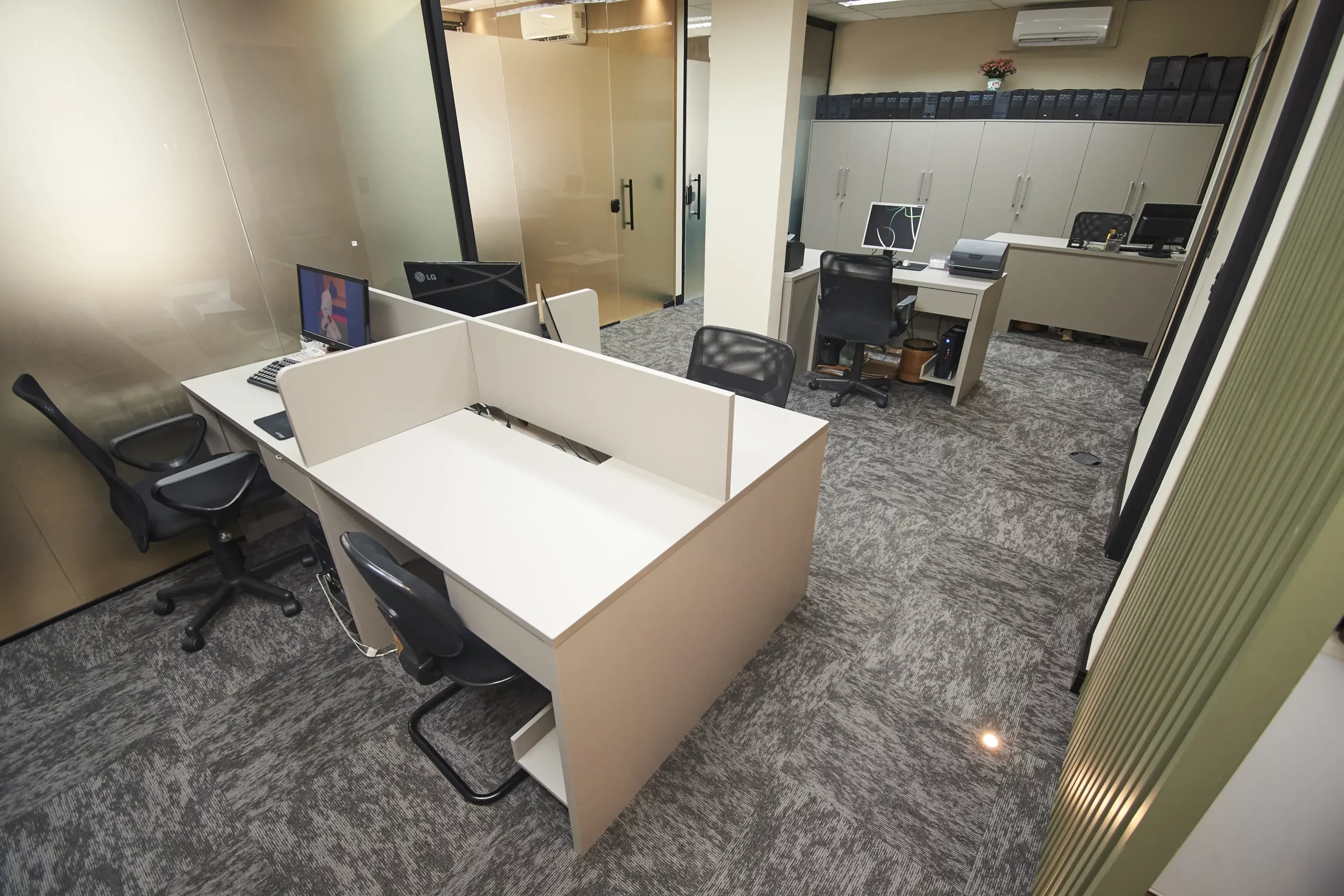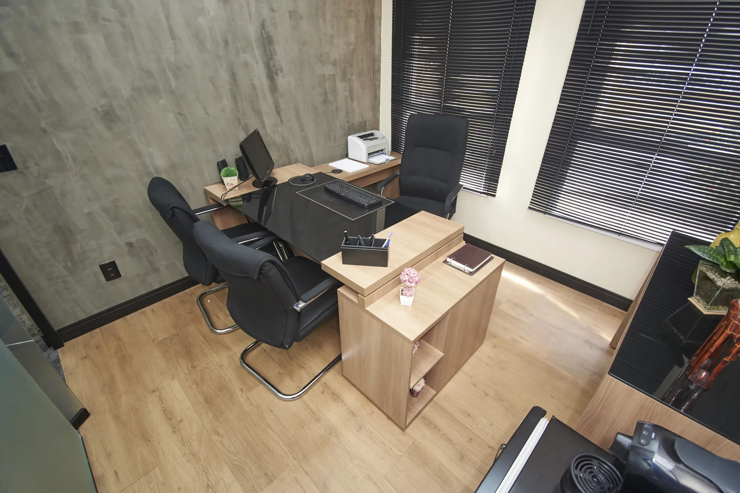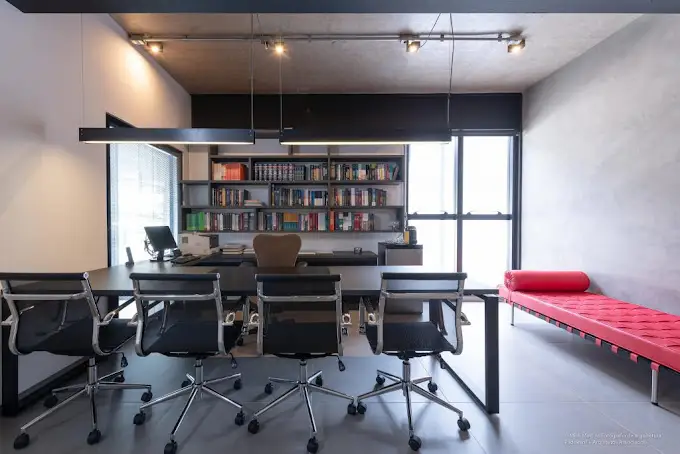 Projetos e reformas para empresas, integrando mobiliário sob medida e aproveitamento inteligente dos espaços.